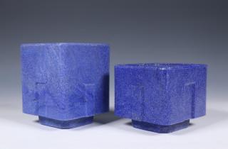 A. D. Copier (1901-1991), twee vierkante blauw graniver cactuspotten, 1929;