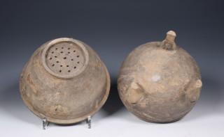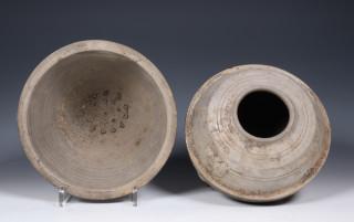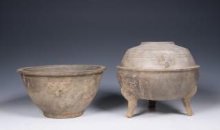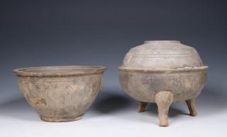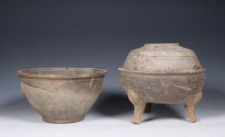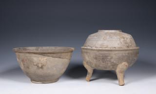 China, grey pottery cooking vessel, possibly Han dynasty (206 BC- 220 AD) or later,