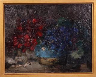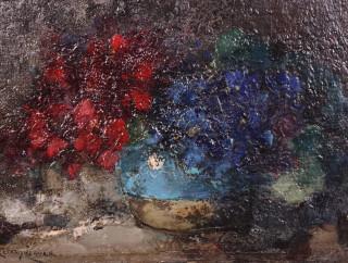 Stilleven met bloemen in een gemberpot