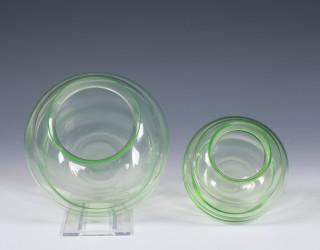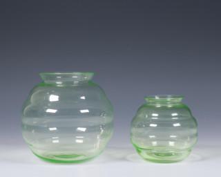 A. D. Copier (1901-1991), twee glazen annagroene violenvazen, 1923;