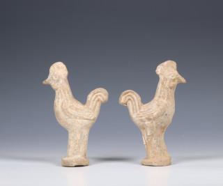 China, pair of earthenware models of chickens, possibly Han dynasty (206 BC- 220 AD),