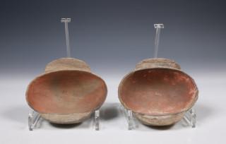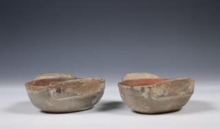China, pair of pottery earcups, Han dynasty (206 BC- 220 AD),