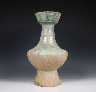 China, green-glazed pottery vase, Han dynasty (206 BC- 220 AD),