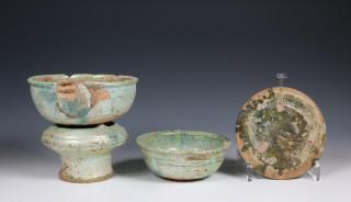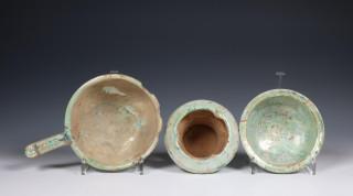 China, green-glazed pottery water-ladle and a stove on burner, Han dynasty (206 BC- 220 AD),