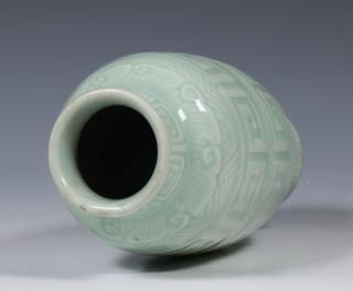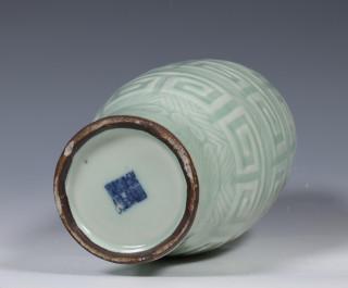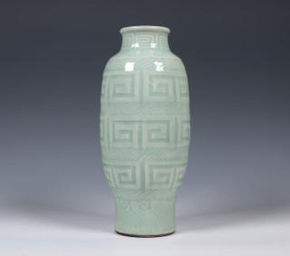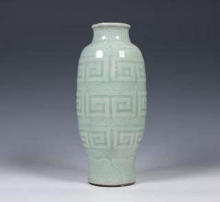 China, archaistic celadon-glazed porcelain vase, 19th/ 20th century,