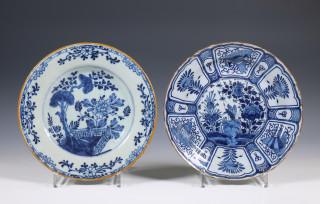 Delft, drie blauw wit aardewerk schotels, 18e eeuw;