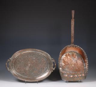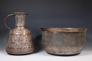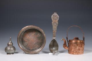 Persia, a collection of eight copper and parly filver plated ceremonial utensils, ca. 1900 and later.
