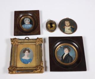 Vier antieke geschilderde portret miniaturen, 19e eeuw;