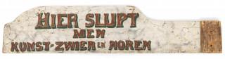 De andere zijde 'Hier slijt men Kunst- Zwier en Noren. Op gemarmerde ondergrond.