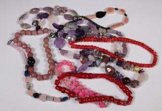 w.o. rozenquartz, amethist en gebeitste koraal.