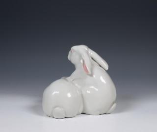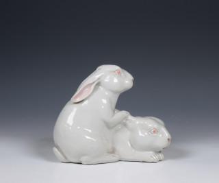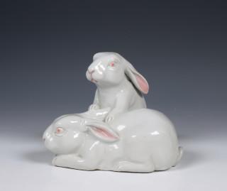 Japan, white-glazed porcelain okimono of a pair of rabbits, 19th/ 20th century,
