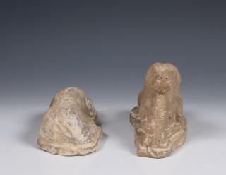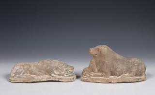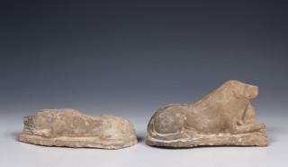 China, two earthenware models of dogs, Northern Wei dynasty (386-535),