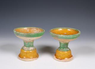 China, pair of sancai-glazed pottery offering dishes, Ming dynasty (1368-1644),