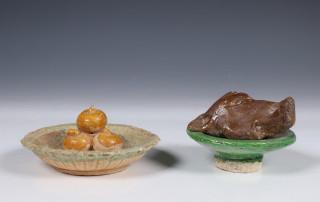 China, two sancai-glazed pottery models of offerings, Ming dynasty (1368-1644),