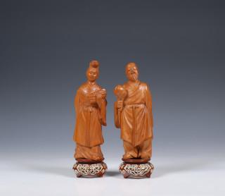 China, boxwood models of a lady and a gentleman, 20th century,