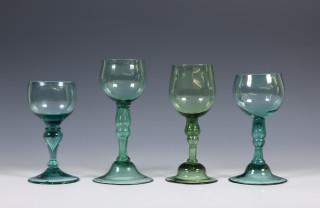 Engeland, vier groene wijnglazen, 18e eeuw;
