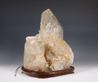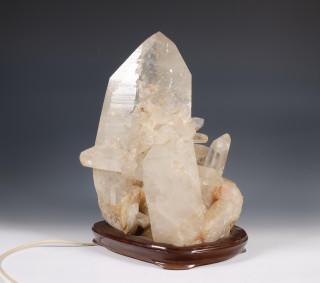 Tafellamp, mineraal bergkristal op houten voet, 20e eeuw