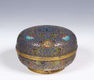 China, cloisonné enamel incense box and cover, late Qing dynasty (1644-1912),