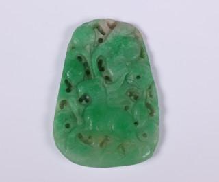 carved and openworked with a horse, coin and lotus (some wear, stone altered at places)