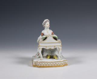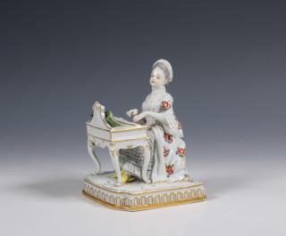 Meissen, porseleinen vormstuk, meisje achter pianola, 19e eeuw,