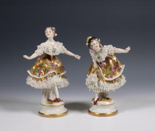 Frankenthal, twee porseleinen figuren, danseressen, 19e eeuw