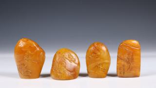 China, four shoushan soapstone seals/ paperweights,