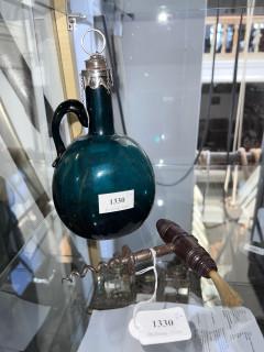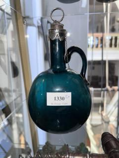 Hierbij Engeland, Bristol green glazen karaf met zilveren montuur, 19e eeuw.