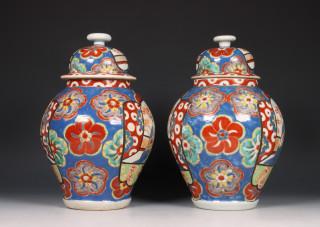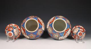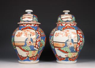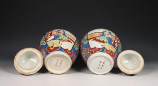 Japan, pair of Imari porcelain jars and covers, 20th century,