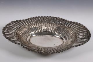 ovaal model met golvende rand, gelobd en versierd met bloemen, mt. onduidelijk, 800ste gemerkt,
