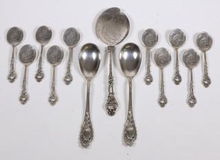 Twaalfdelige ijsset, Fa. J. M. van Kempen, 19e eeuw en paar compotelepels,