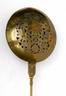 Uitgevoerd met ajour gezaagde en gegraveerde voorstelling van bloemenvaas. Koperen steel.