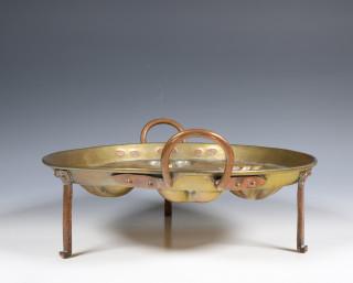Uitgevoerd met roodkoperen genagelde handvatten en poten.