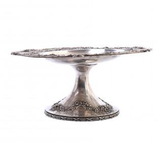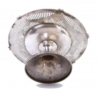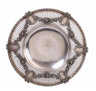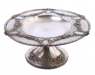 rond met ajourrand, versierd met bandwerk, medaillons en bloemquirlandes, ronde kelkvormige voet met strik en bloemmotieven versierd, gemerkt Spaulding & Co., sterling101/2 inch en nummer 2263