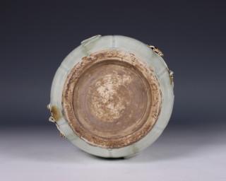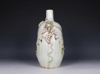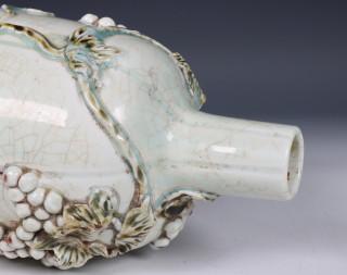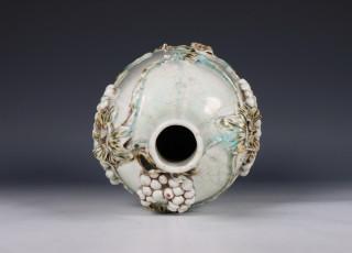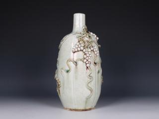 China, Celadon vase with decoration of grape leaves in relief, 19th century.