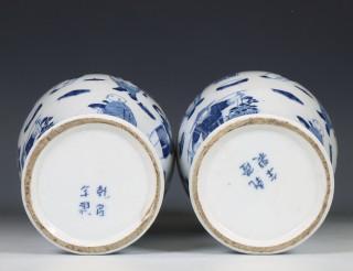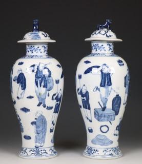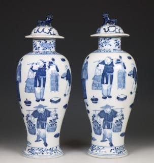 China, pair of blue and white transfer-print vases and covers, 20th century,