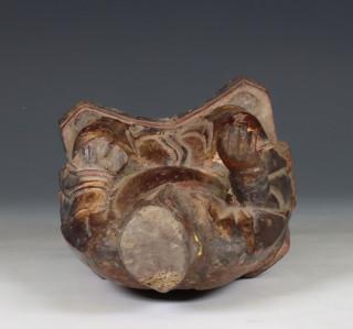 shown in seated position with his right hand raised, partially covered in gilt and red lacquer (wear and damages as expected)