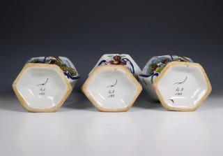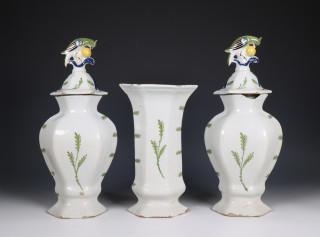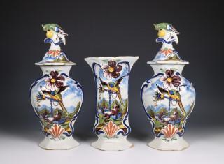 Uitgevoerd met polychrome schildering met voorstelling van papegaaien. (beschadigd, herstellingen).