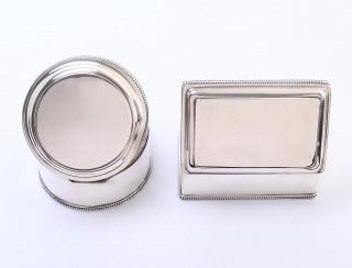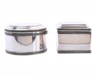 Eén rond en één rechthoekig, beide met parelrand. Met jaarletter u voor 1879. Geen meesterteken aangetroffen,