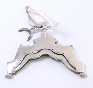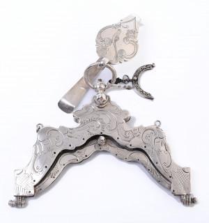 accoladevorm met graveringen en haak, mt. Jan Kleyn 1776, beursje met haak mt. A. van Geffen Amsterdam 1769