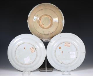 Delft, paar polychroom geschilderde aardewerk schotels, 18e eeuw;