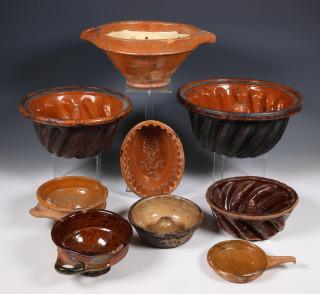 Diverse aardewerk bak en pudding vormen, 18e eeuw;
