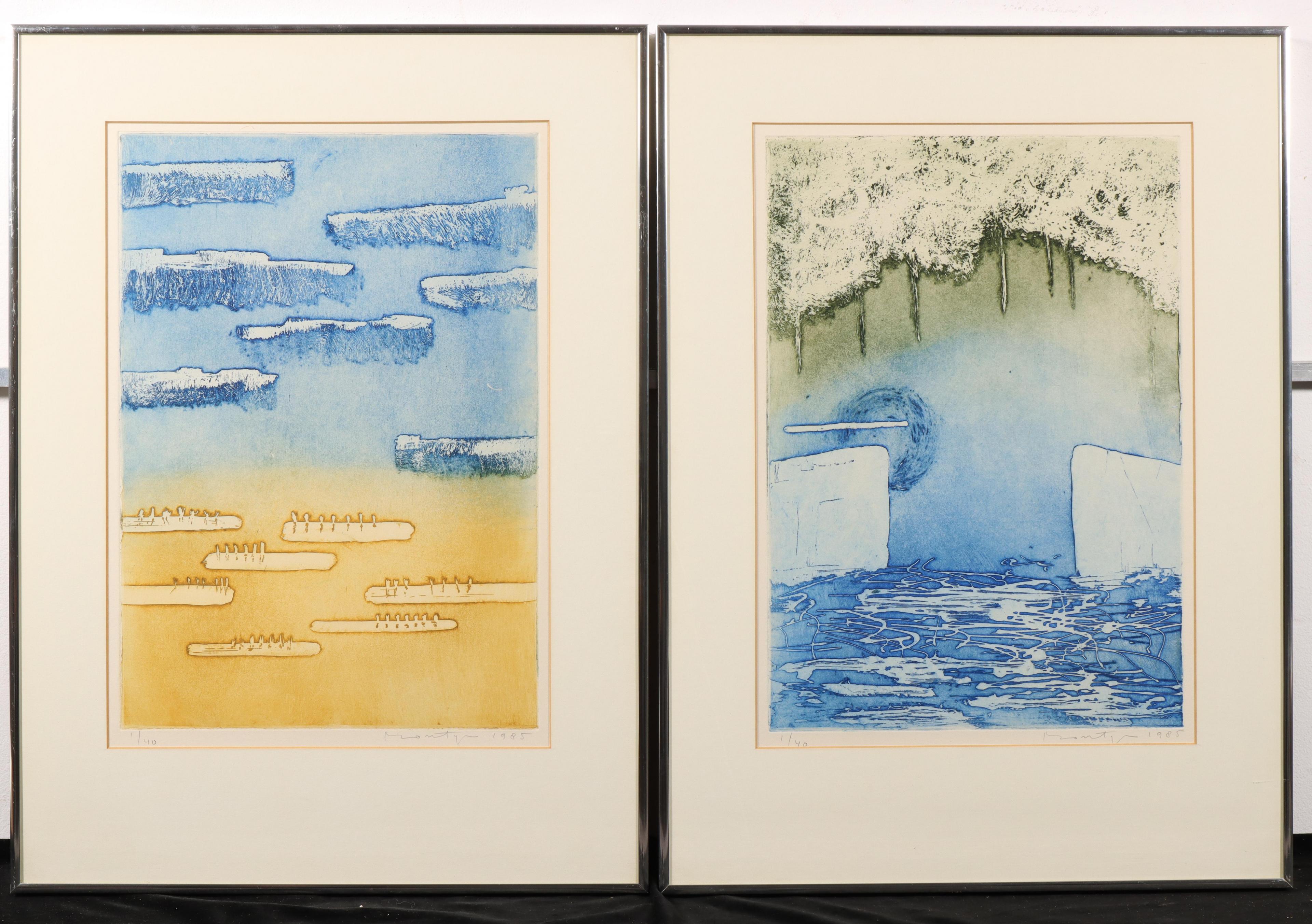 twee etsen, deels glas defect, gesign., 1981 en 1988, 50 x 40 cm. en twe etsen, gesign., 1985, 45 x 30 cm.