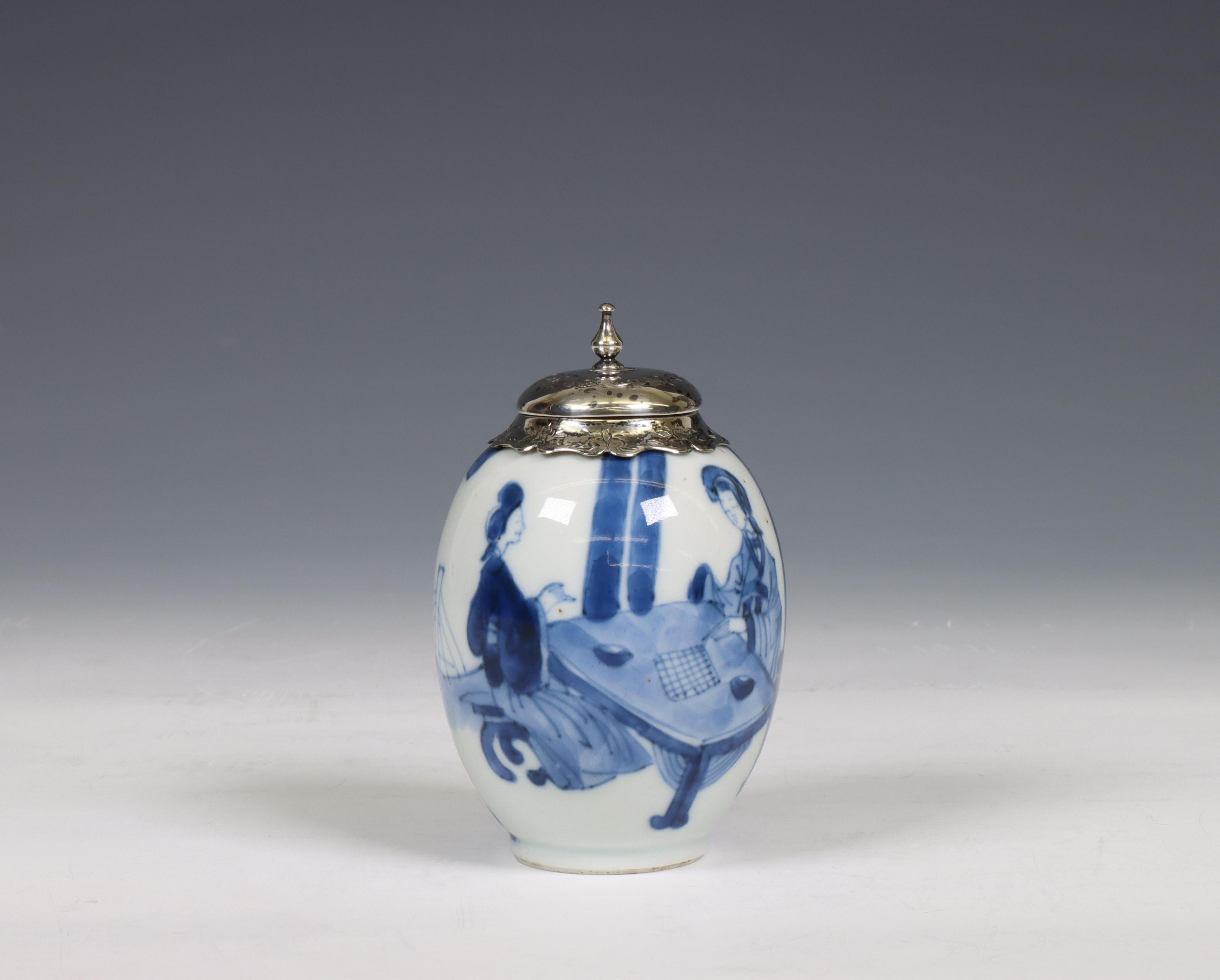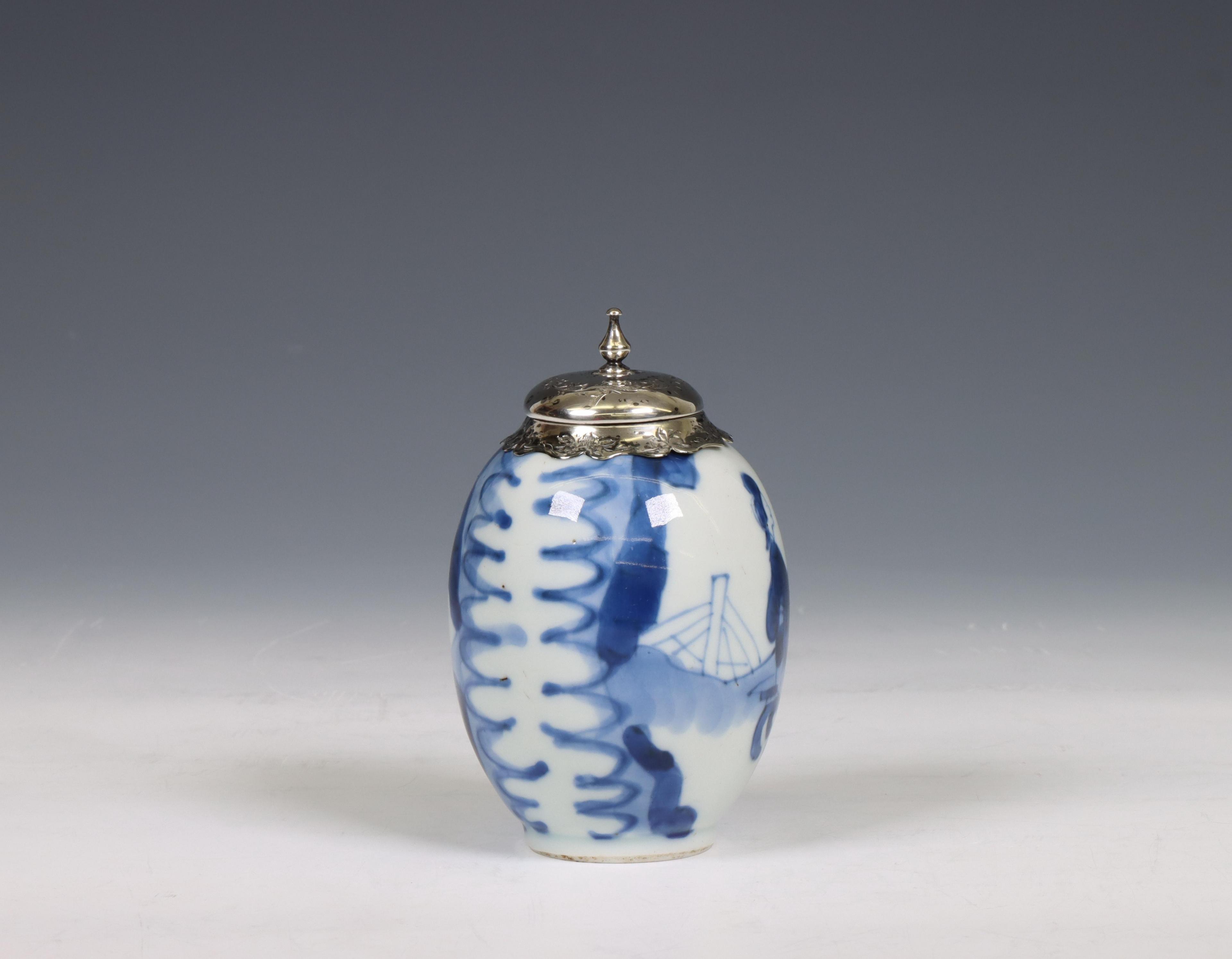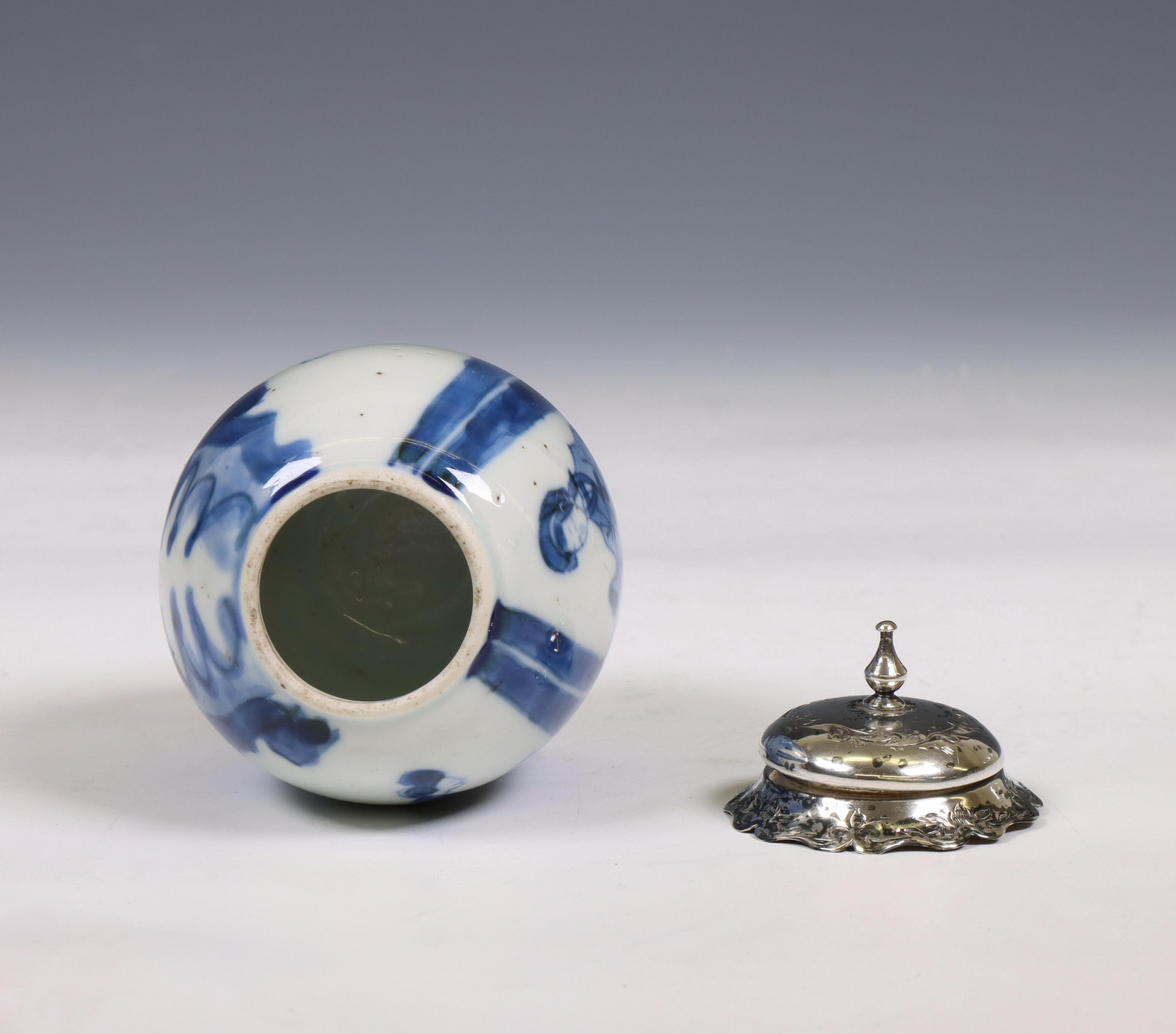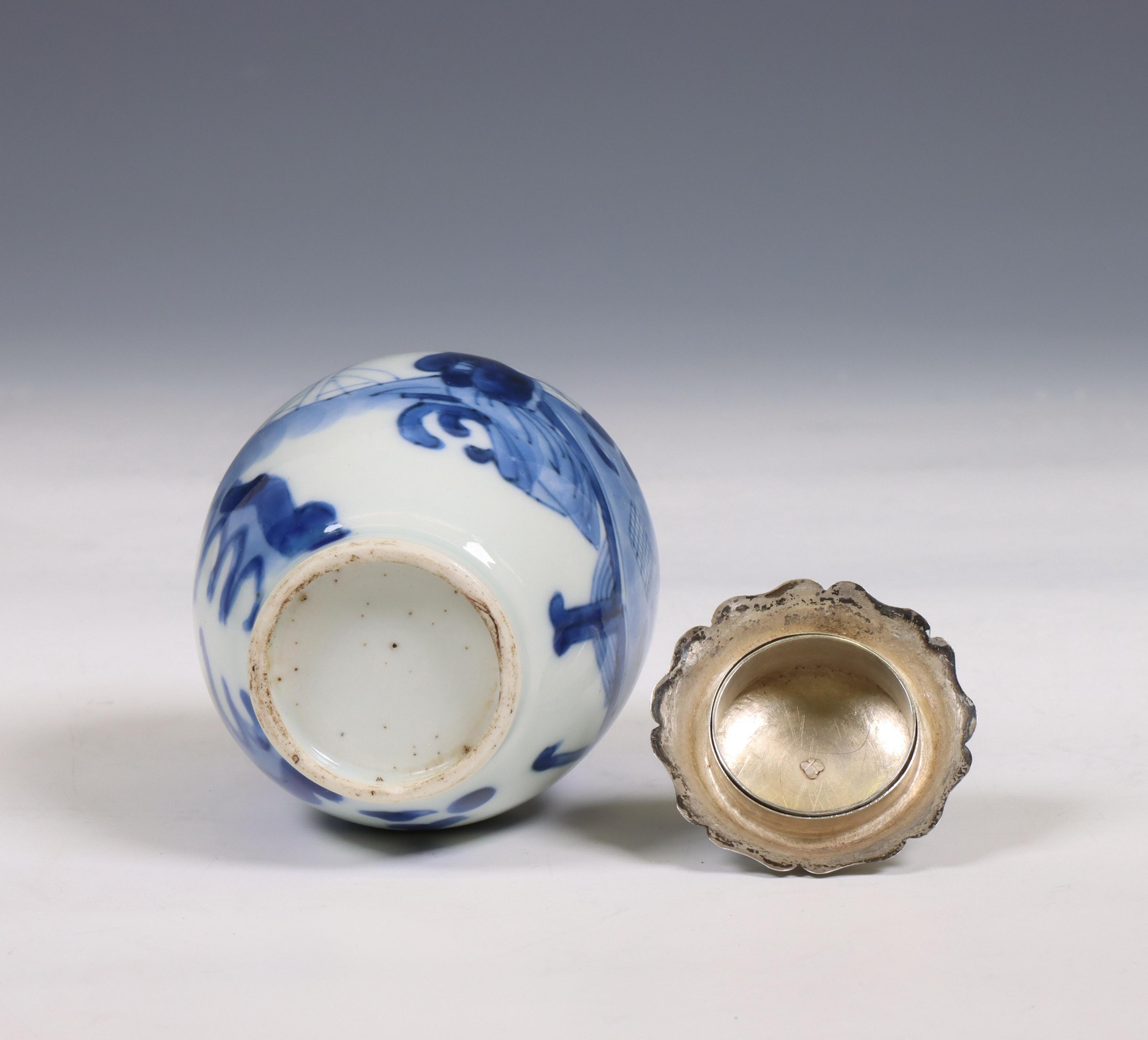 China, a silver-mounted blue and white porcelain jarlet, Kangxi period (1662-1722), the silver later,