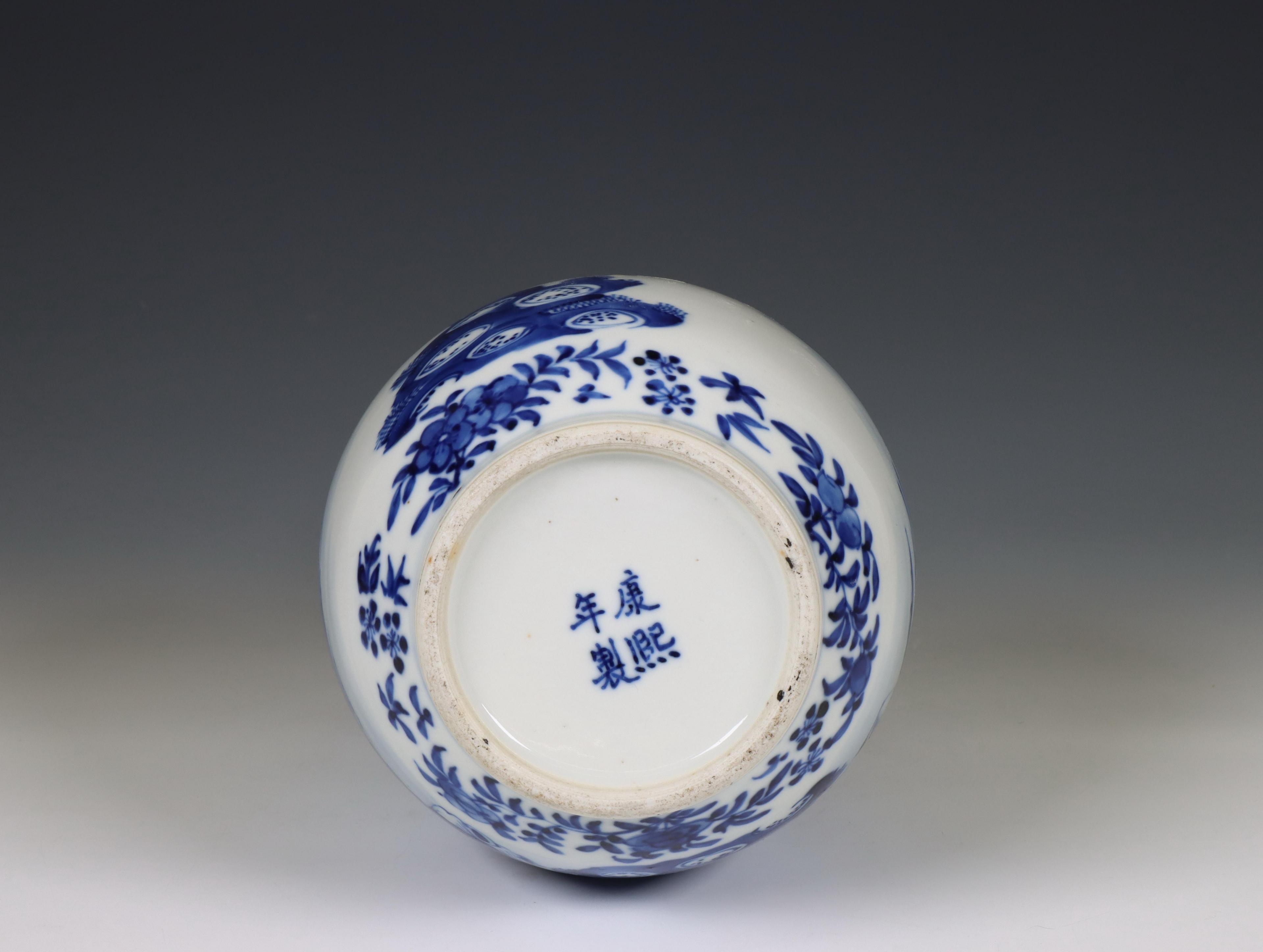 decorated with dignitaries in a landscape, with apocryphal Kangxi mark
