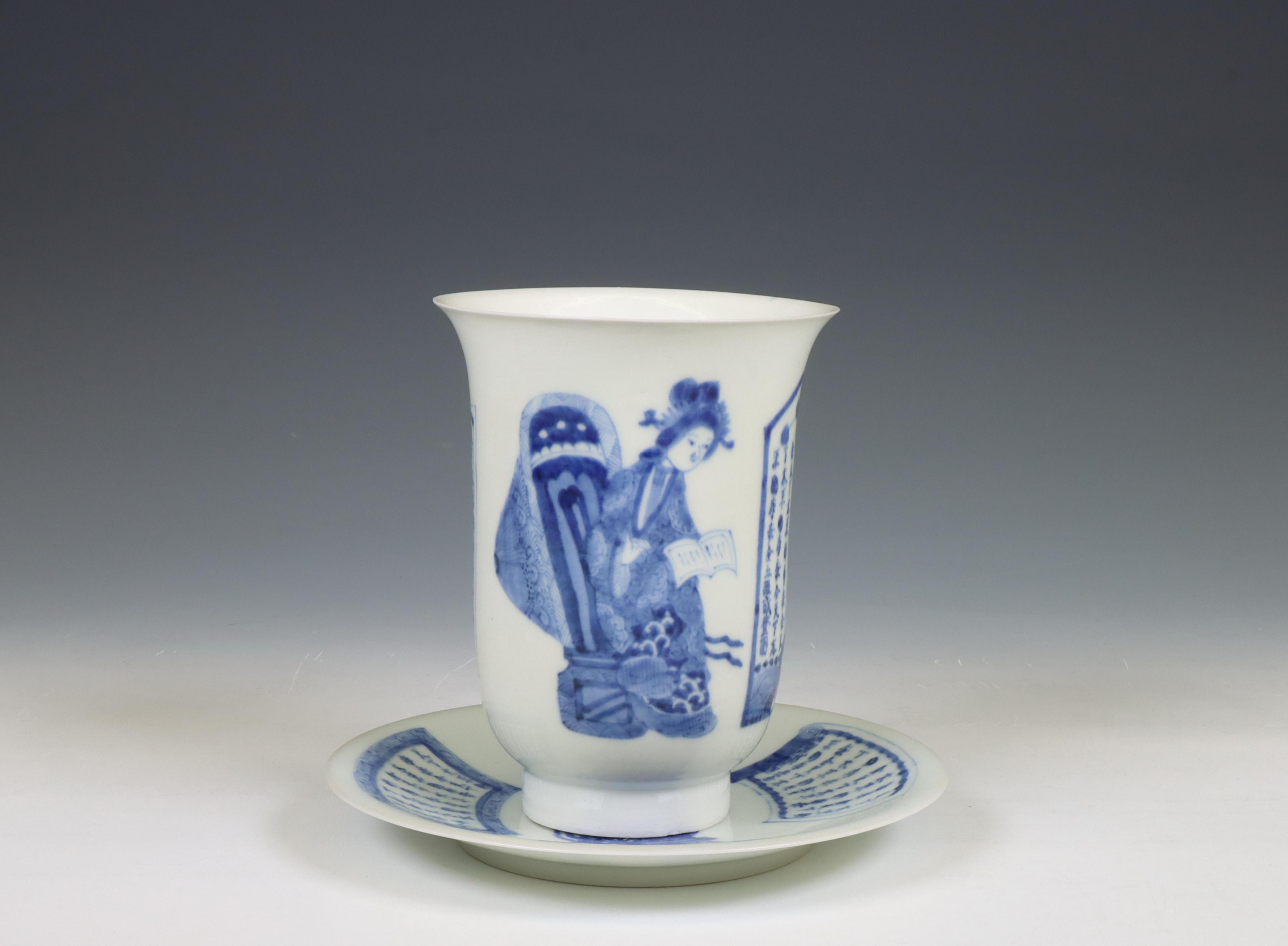 Japan, large blue and white porcelain 'Wu Shuang Pu' cup and saucer, 19th century,
