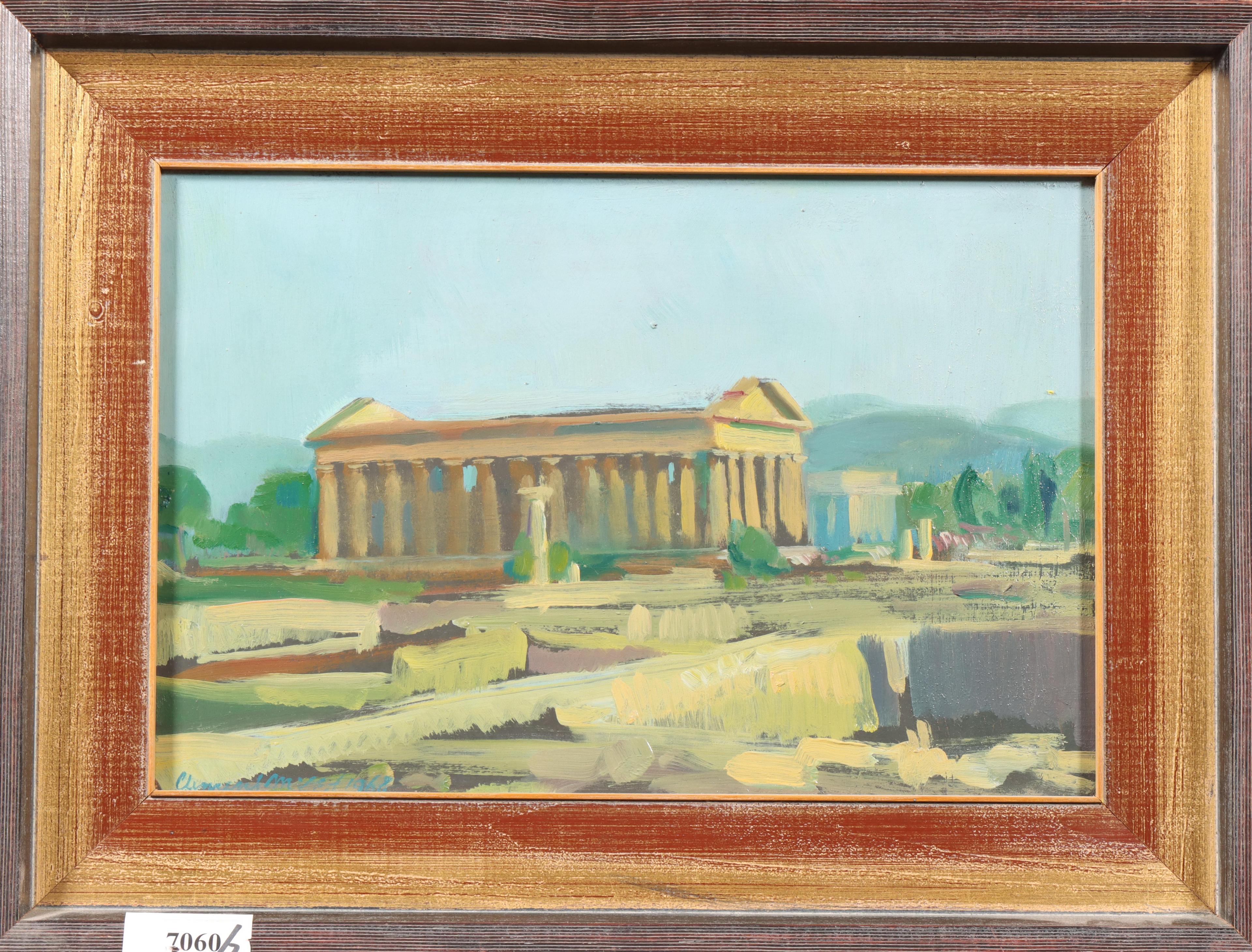 Tweemaal schilderij met Griekse tempel