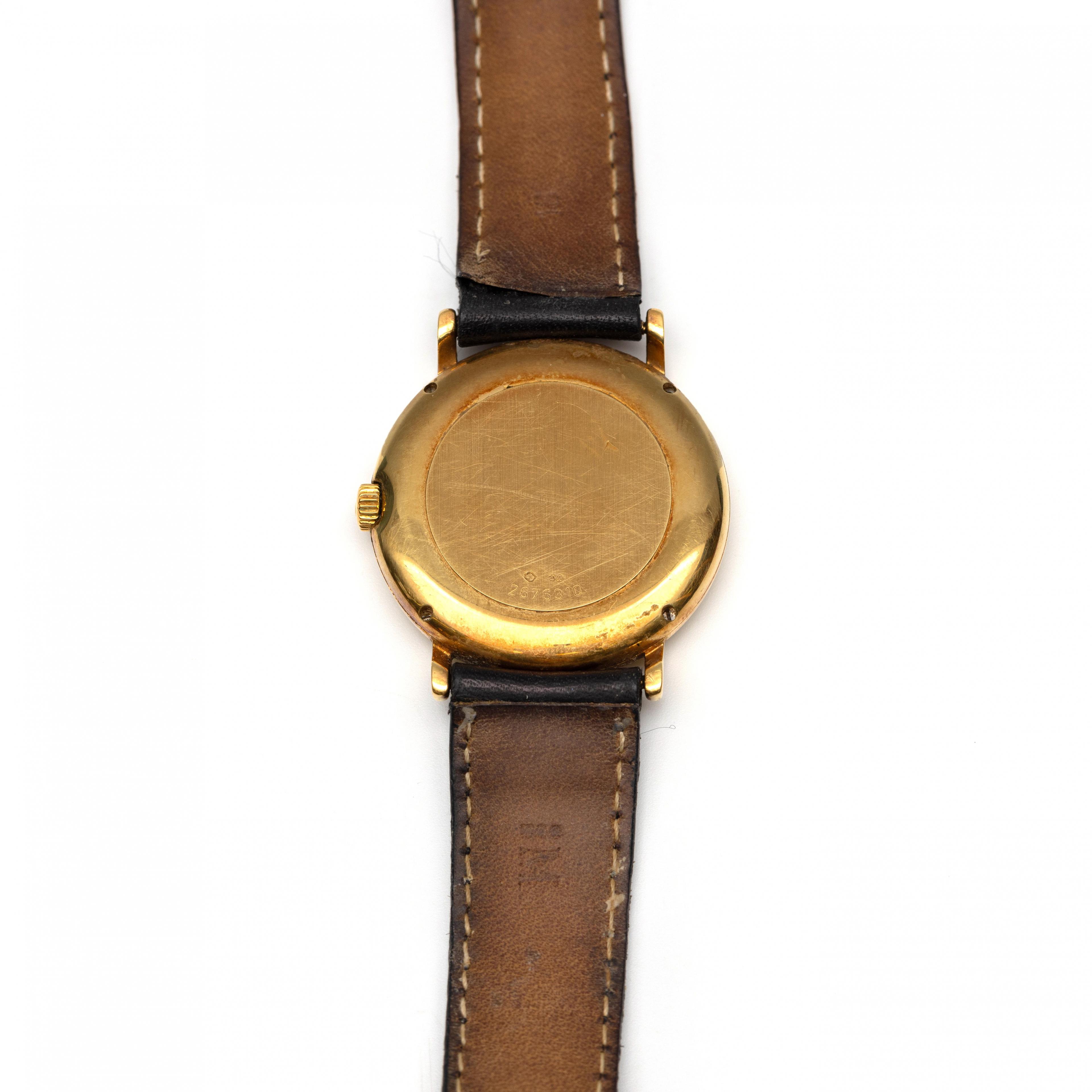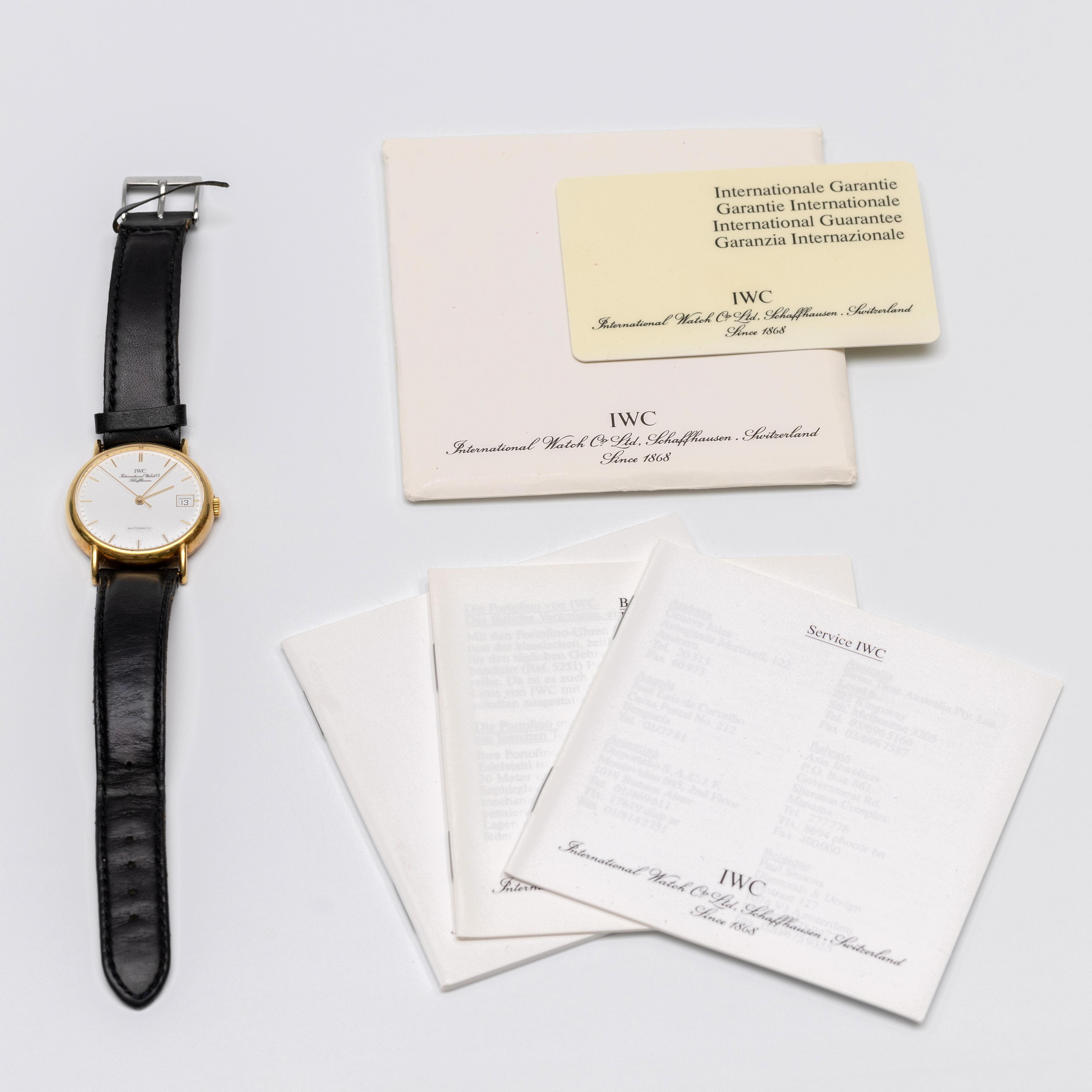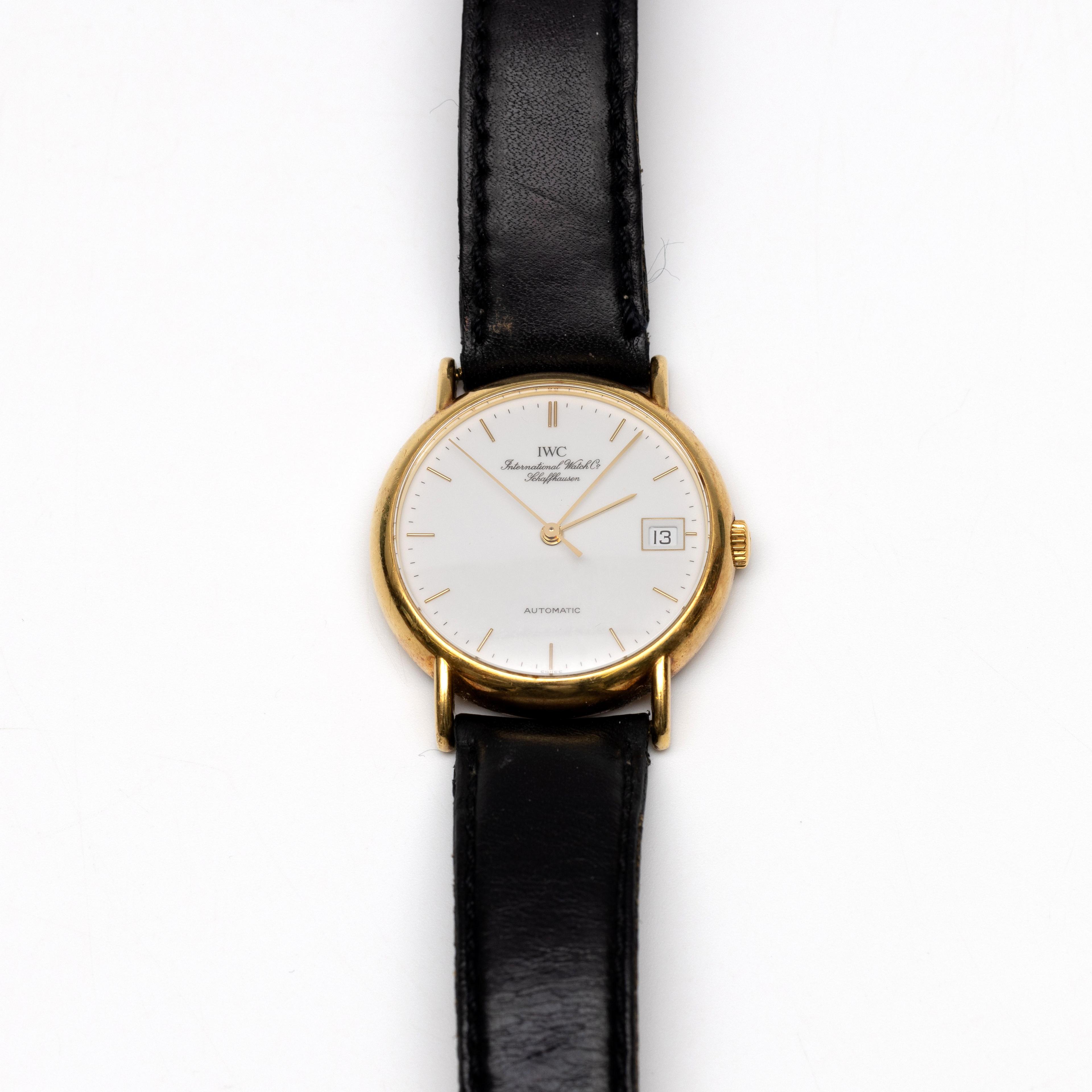 IWC, 18 k. gold men's wristwatch, automatic. Model Portofino. With date indication at 3 o'clock. On a black leather strap (not original). With warranty certificate and manual, dated 1998