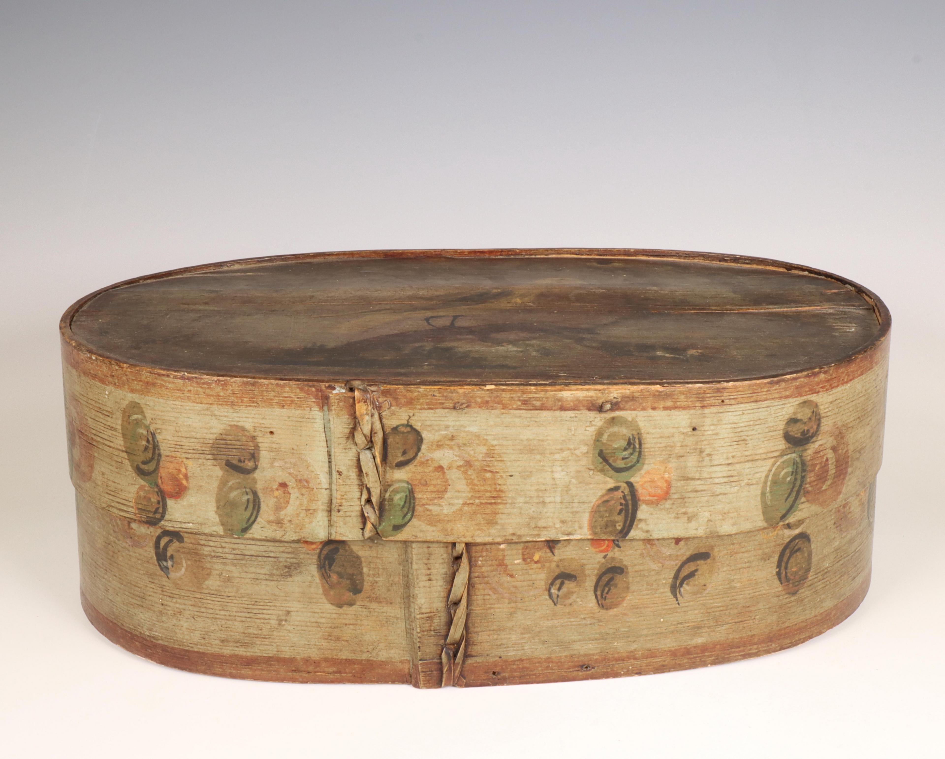 Spanen doos met beschildering van vogels op de deksel, 18e eeuw;