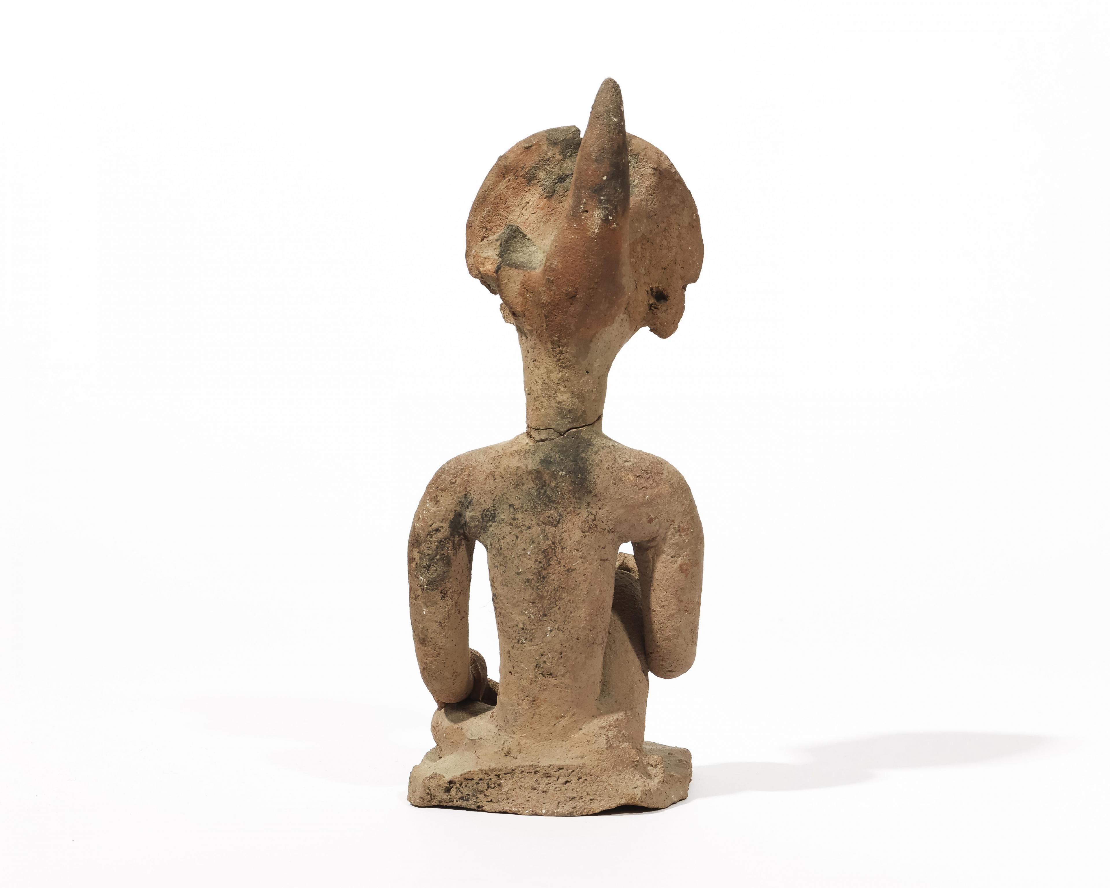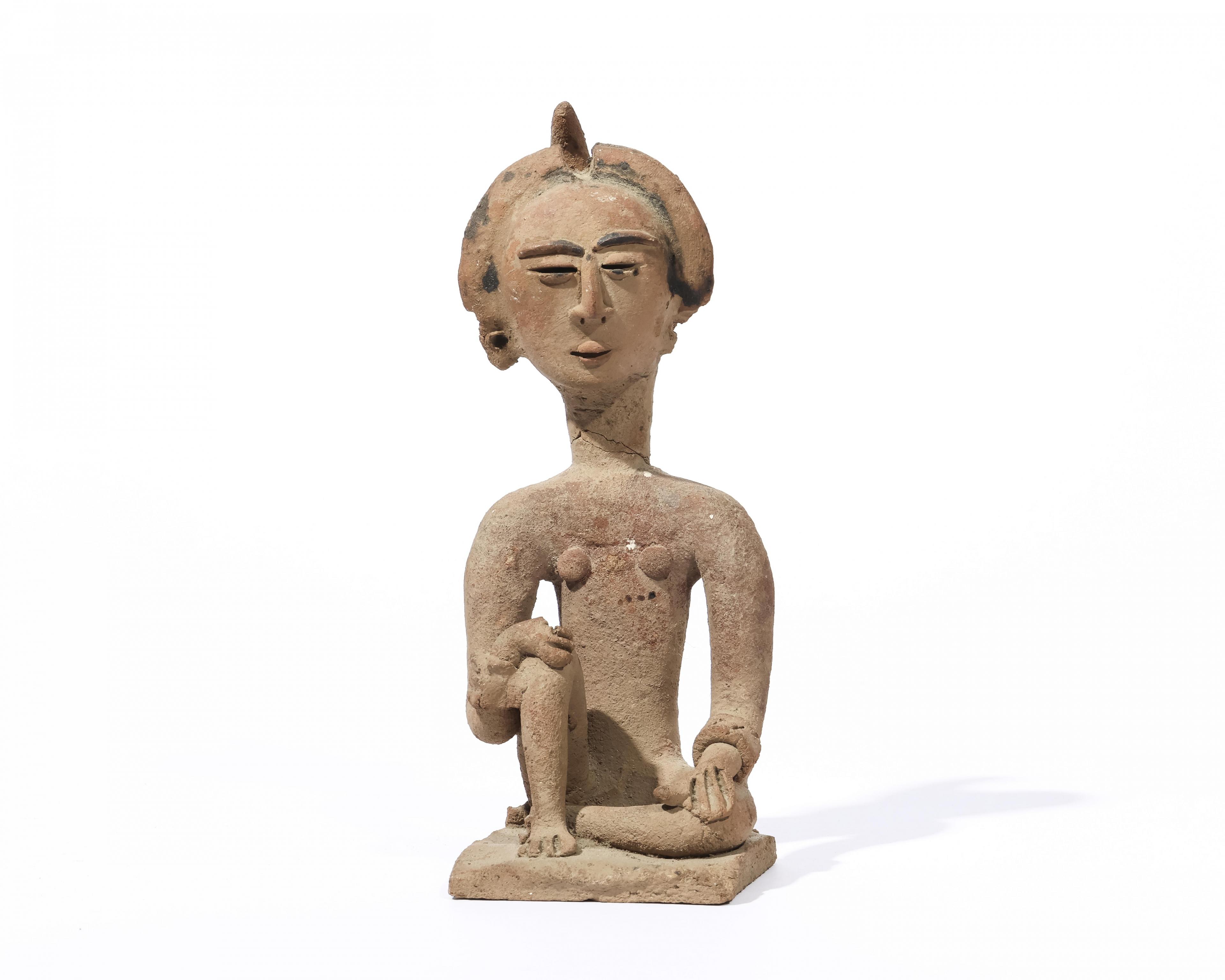 Sulawesi, Makassar, terracotta female figure, some details in black.