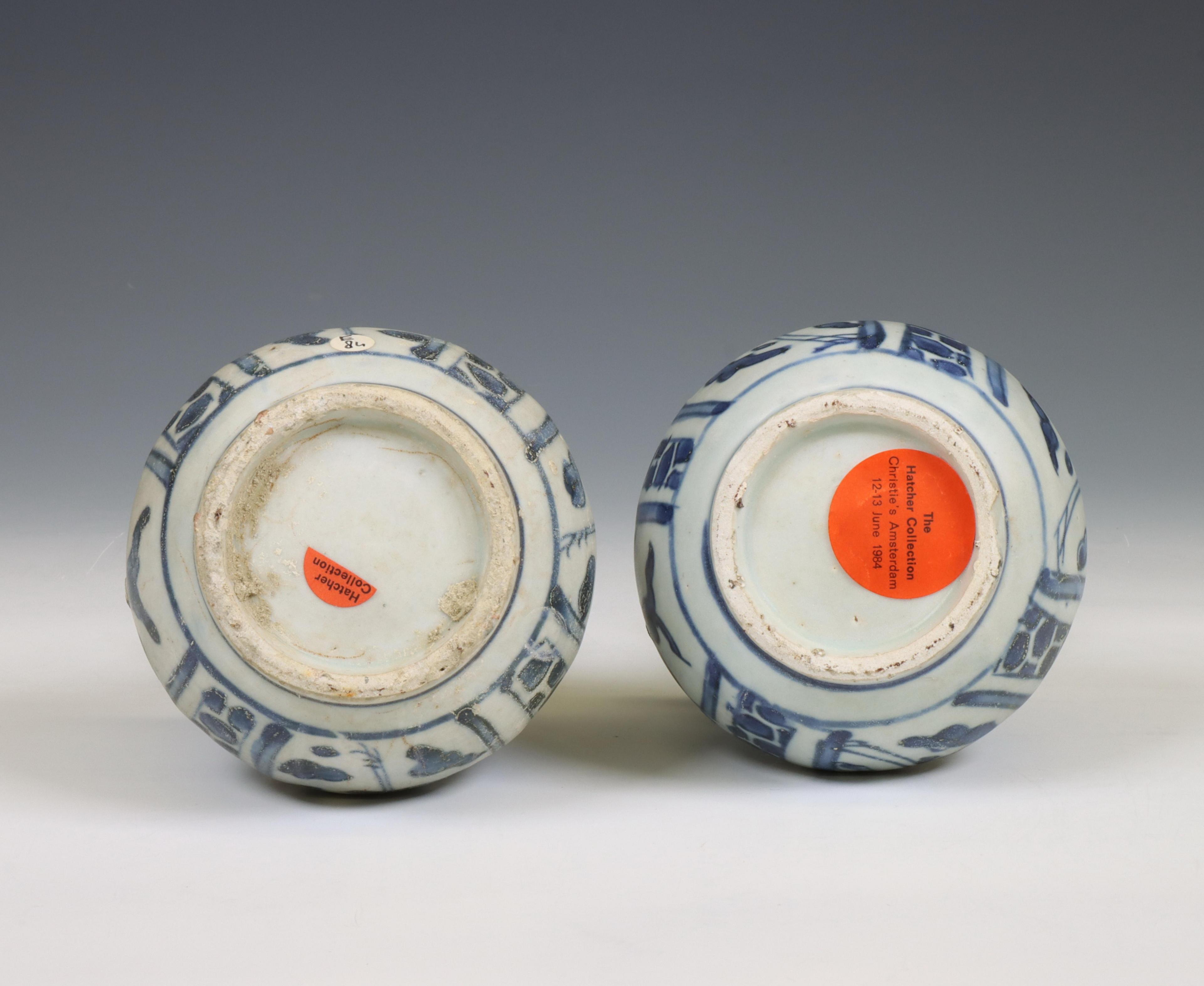 China, two blue and white porcelain 'Hatcher Cargo' kendi's, circa 1640,